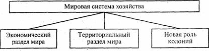 У финансового капитала ведущих держав возникло стремление прочно закрепить за собой территории других стран путем установления над ними политико-административного господства. Благодаря этому в конце XIX — начале XX в. резко усилилась колонизация ранее свободных народов. Как известно, это привело к завершению территориального раздела мира великими державами. Последние захватили свыше 25 млн кв. километров территории, а численность населения колоний возросла на четверть миллиарда человек и составила 570 млн. Так был сделан окончательный шаг к образованию мирового хозяйства.