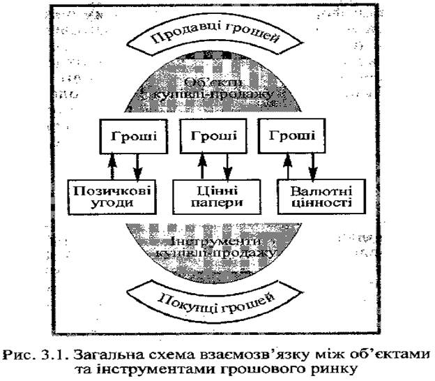 Схема взаємозв'язку між об'єктами та інструментами грошового ринку в загальних рисах показана на рис.1.