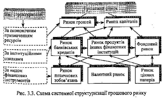 Якщо всі три види структуризації грошового ринку звести в єдину систему, то її можна подати у вигляді такої схеми (рис. 2 ).