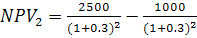 | NVP (чистый приведенный доход минус приведенные инвестиции) | -3000 | 887,57 | 2184,79 | 1365,55 |