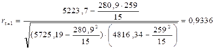 | 1 | 9,8 | 10,57 | -0,77 | 0,5929 | -0,45653 | 0,35153 |