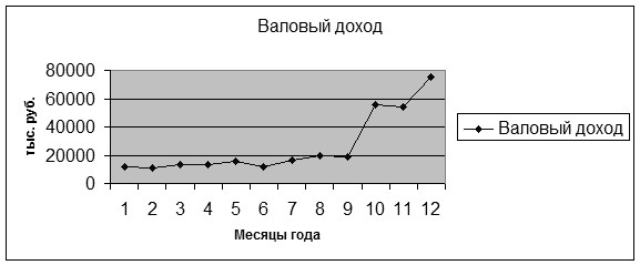 Рисунок 3. Динамика валового дохода фирмы «Рив Гош» в 2008 г. по месяцам
