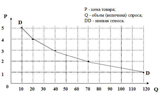 Кривая спроса - линия, характеризующая закон спроса, то есть зависимость между ценой товара и величиной спроса на него.