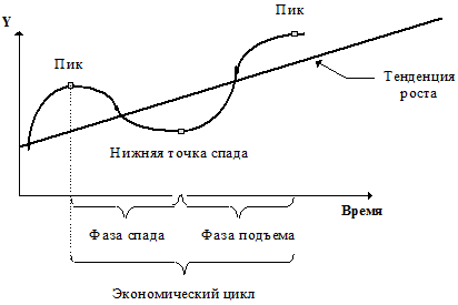 На рисунке изображена динамика реального объема национального производства во время экономического цикла.
