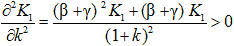 , но этот эффект присутствует все меньше и меньше, ведь K 1 выпукло по отношению к k: