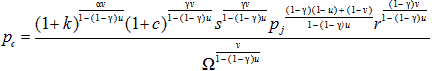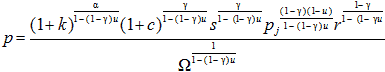 При этом должно соблюдаться правило постоянства цен. Следовательно, переменные k и c должны удовлетворять условию