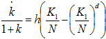 , таким образом, что изменение показателя объема загрязняющего капитала на работника x определяется следующим логистическим дифференциальным уравнением: