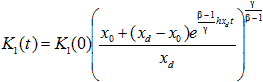 Пока x > x d , другими словами, пока цель не достигнута, показатель роста объема загрязняющего капитала должен снижаться, так как министерство увеличивает эко-налог, а фирмы реагируют снижением спроса на загрязняющий капитал, повышая занятость, и в то же время снижаются социальные отчисления.