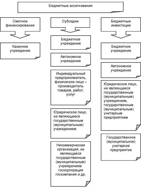 В связи с переходом на программноцелевой метод финансирования и утверждением новых форм государственных (муниципальных) учреждений, получающих бюджетное финансирование, Российская Федерация стала использовать не применявшиеся ранее формы финансирования средств бюджета, например, субсидирование бюджетных и автономных учреждений; финансирование в форме субсидий, в том числе в виде имущественного взноса некоммерческих организации, не являющихся государственными (муниципальными) учреждениями (го-