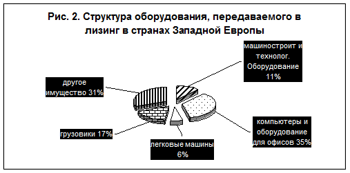 В социально-экономической ситуации, сложившейся в экономике страны, необходим поиск нетрадиционных методов обновления материальной базы и ускоренной модернизации основных фондов предприятий различных форм собственности, оживления инвестиционной сферы. Приведенное выше высказывание становится еще более актуальным на фоне снижения темпов экономического развития, когда остро встает необходимость крупных денежных вливаний в отечественную экономику. Особенно важным направлением сейчас становится развитие среднего и малого бизнеса, и, как следствие поиск методов финансирования этого развития. Одним из таких наиболее ярких методов является лизинг, получивший в последние десятилетия, особенно за рубежом, широкое распространение и признанный в странах Западной Европы и США как один из наиболее эффективных методов инвестирования средств в оборудование [25, c.110].