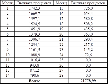 Из приведенного приложения видно, что, начиная с 25 месяца, месяца после расчета с банком, у предприятия начинает чистый приток денежных средств за счет экономии налога на прибыль, что снижает текущую приведенную стоимость по проекту.