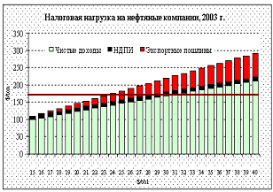| Доходы компаний в зависимости от уровня цен на нефть при налоговом режиме 2003 и 2005 гг. | |