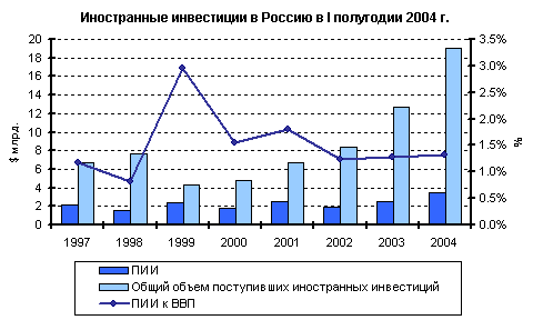 Доклад: Иностранные инвестиции в экономику России в I полугодии 2004 г.