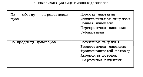 лицензионного договора (см. табл. 4);