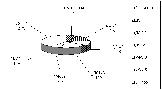 Сегодня организации, занятые возведением панельного жилья (три ДСК, СУ-155, СУ-83, “Мосстроймеханизация-5”, “Мосфундаментстрой-6”), объединены в Московский строительный союз (МСС). На его долю, как уже было сказано, приходятся около 2,5 млн. кв. м. возводимого жилья ежегодно. Земля под строительство и прокладка всех инженерных коммуникаций к возводимым ими кварталам новостроек оплачиваются правительством столицы. И хотя формально все члены МСС - независимые от мэрии юридические лица, на самом деле степень их взаимной зависимости очень велика.