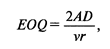 При этом существуют определенные ограничения на размер товарно-материальных запасов. Ограничителем выступают издержки их хранения. Поэтому возникает необходимость достижения баланса между преимуществами и недостатками, с одной стороны, заказывания, а с другой - хранения товаров. Этот баланс достигается выбором оптимального объема партий заказанных товаров, или определением экономического (оптимального) размера заказа (ЕОQ), который вычисляется по формуле: