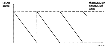 Рис. 7. График движения запасов в системе управления запасами с установленной периодичностью их пополнения до постоянного уровня.