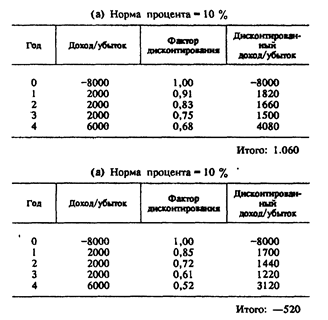 Как становится очевидным после рассмотрения табл., при норме процента, равной 10% годовых, эта инвестиция представляется выгодным мероприятием; при норме процента, равной 18% годовых, это вложение капитала будет убыточным и для фирмы.