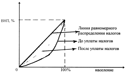 Рис 2. Влияние прогрессивного налога на неравенство в доходах.