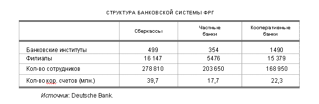 Еще одна структурная слабость германской банковской системы, по мнению экспертов, состоит в том, что большинство немецких банков так и остались универсальными и вплоть до последнего времени представляли собой своего рода "супермаркет" по предоставлению финансовых услуг.
