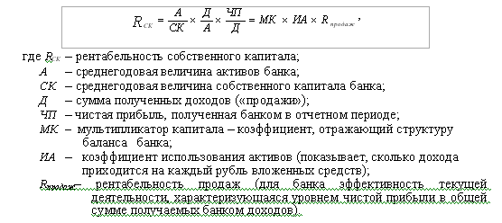 Несомненной важностью и ценностью в рамках системы управления банком обладает факторный анализ итогового показателя деятельности любой коммерческой организации - рентабельности собственного капитала. Модель для факторного анализа отражает взаимосвязь эффективности использования средств собственников и политики, проводимой менеджментом: