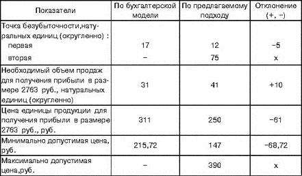 Следует отметить, что именно представление формулы для определения прибыли от реализации продукции в виде (6) либо (9), а не в жестко детерминированном с постоянными значениями переменных затрат и цен на единицу продукции, позволяет преодолеть основные допущения бухгалтерской модели безубыточности.