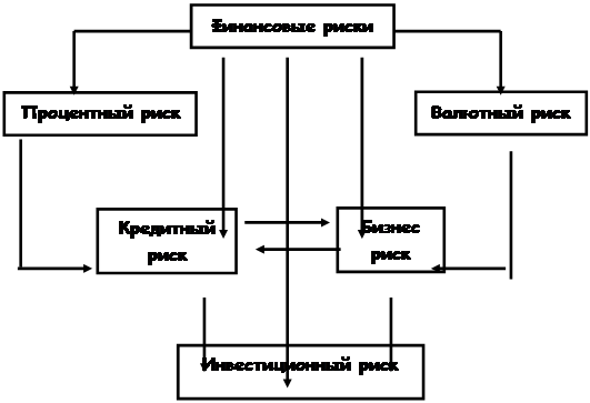 На каждом из этих рынков осуществляется финансово-экономическая деятельность, и проводятся операции и сделки, подверженные разного рода финансовым рискам. Риски возникают в связи с движением финансовых потоков и проявляются на рынках финансовых ресурсах в виде процентного, валютного, кредитного, коммерческого (бизнес-риск), инвестиционного рисков.