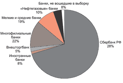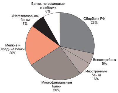 В регионах конкуренция, как правило, идет между Сбербанком и одним-двумя местными банками. Население имеет низкий уровень сбережений и потому придерживается консервативной стратегии их размещения. В этих условиях уровень процентных ставок и разнообразие предлагаемых услуг не играют существенной роли, а успех на рынке фактически зависит от одного фактора— оценки вкладчиками уровня надежности банка. Как и в Москве, она тесно связана с участием государства, в том числе региональных властей в его капитале, а также с размером банка.