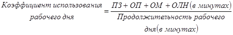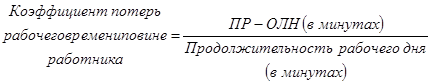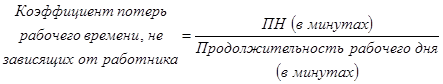 На основе знания данных показателей определяется коэффициент КППТ возможного повышения производительности труда за счет устранения потерь времени: