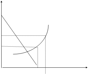 Предположим в некоторой местности несколько производителей стандартизированной подукции хотят образовать картель. Допустим,что есть 15 региональных поставщиков данного продукта. Фирмы назначают цену равную средним издержкам. Каждая из фирм боится поднять цену из опасения, что другие не последуют за ней и ее прибыли станут отрицательными. Допустим, что выпуск находится на конкурентном уровне Qc (График 1), соответствующему размеру выпуска, при котором кривая спроса пересекает кривую МС , являющейся горизонтальной суммой кривых предельных издержек каждого продавца. Кривая МС была бы кривой спроса, если бы рынок был полностью конкурентным. Каждая фирма выпускает 1/15 часть общего выпуска Qc.