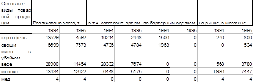 Из таблицы 2 видно, что уровень поставок государству снижается: если в 1994 году реализация заготовительным организациям по отношению к общему объему реализации составила по растениеводческой продукции »73%, по свинине - 98%, а по молоку - 48%, то в 1995 году эти показатели уже гораздо ниже: продукция растениеводства - 58%, мясо - 67%, молоко - 41%.
