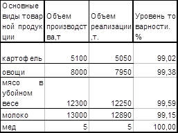 Нужно отметить, что общий объем реализации снизился по картофелю (на 66 %), мясу (на 60%) и молоку (на 6%), а по овощам - возрос (на 13%).
