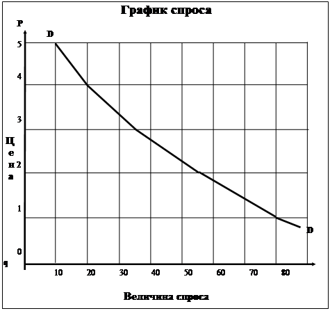 Обратную зависимость между ценой продукта и величиной спроса можно изобразить в виде простого двухмерного графика, показывающего величину спроса на горизонтальной оси, а цену на вертикальной оси.