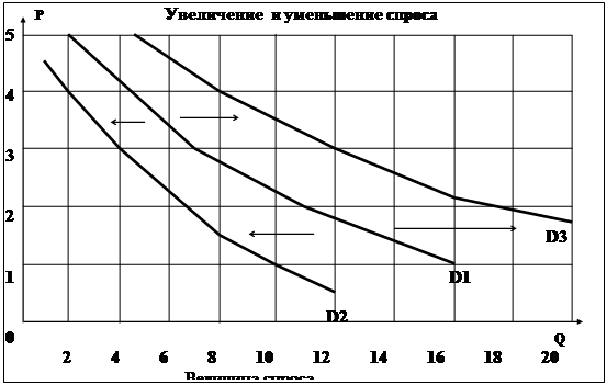 Изменение величины спроса означает передвижение с одной точки на другую точку на постоянной кривой спроса, то есть переход от одной комбинации “цена — количество продукта” к другой комбинации. Причиной изменения величины спроса служит изменение величины данного продукта.