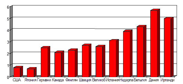 Показательно, в данном отношении, сопоставление ситуации на рынке труда Швеции и США При том, что в Швеции в 3 с лишним раза выше, чем в США, относительные затраты на программы политики рынка труда - 2, 7 против 0,8 ВНП, доля средств, идущих на меры активной защиты населения от безработицы, в два раза значительнее- 70% против 35%.