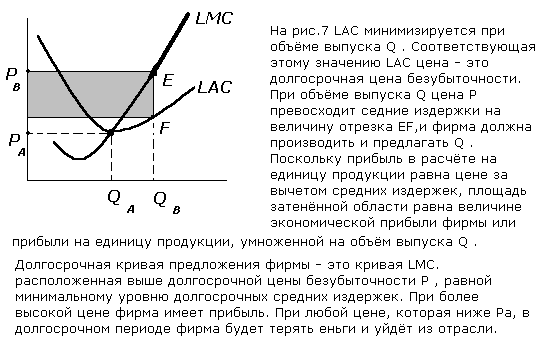 Долгосрочная кривая предложения совершенно конкурентной фирмы представляет собой часть её кривой LМС, расположенную выше точки минимального уровня LАС.