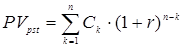 Приведенная стоимость потока пренумерандо в общем виде может быть рассчитана по формуле: