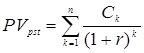 Логика оценки денежного потока в этом случае аналогии вышеописанной; некоторое расхождение в вычислительных формулах объясняется сдвигом элементов потока к началу соответствующих подынтервалов. Для прямой задачи приведенная стоимость потока пренумерандо в общем виде может быть рассчитана по формуле: