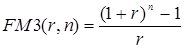 Экономический смысл мультиплицирующего множителя FМ заключается в следующем: он показывает, чему будет равна суммарная величина срочного аннуитета в одну денежную единицу (например, один рубль) к концу срока его действия. Предполагается, что производится лишь начисление денежных сумм, а их изъятие может быть сделано по окончании срока действия аннуитета. Множитель FM часто используется в финансовых вычислениях, и поскольку легко заметить, что значения в общем виде зависят лишь от r и n, их можно табулировать.