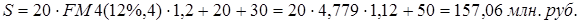 б) как срочный аннуитет пренумерандо с А = 20, n = 4, r = 20% и единовременное получение сумм в 20 и 30 млн. руб. В первом случае имеем:
