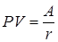 Приведенная формула используется для оценки целесообразности приобретения бессрочного аннуитета. В этом случае известен размер годовых поступлений; в качестве коэффициента дисконтирования г обычно принимается гарантированная процентная ставка (например, процент, предлагаемый государственным банком).