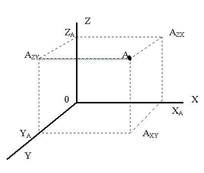 Рисунок 1. Точка А в пространстве и ее проекции на составляющие пространство плоскости