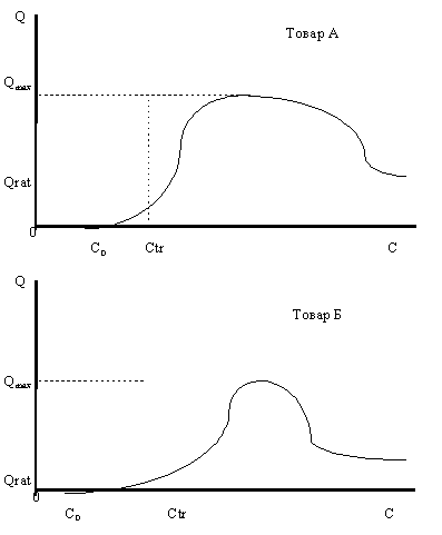 Рассмотрим вначале ситуацию для двух товаров, интересных для потребителя. Назовем их для определенности товаром A и товаром Б. Потребительские свойства рассматриваемых товаров очевидно различны (иначе это был бы один и тот же товар). Для каждого из двух товаров можно построить собственную оригинальную равновесную кривую.