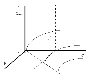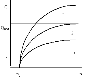 Поверхность предложения, чья проекция на плоскость цена-объем представляется в виде кривой предложения, может располагаться тремя способами относительно линии максимальных объемов: