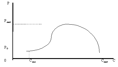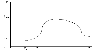Она также начинается при доходе, равном С0. Однако при этом цена товара вовсе не равна нулю, а равна величине Р0, которая, как уже было показано ранее, определяется себестоимостью товара. Проекция равновесной кривой также стремится к некоторой асимптоте, которая имеет координату на оси цен, несколько выше себестоимости и проходит параллельно оси доходов. Цена, определяющая эту линию, характеризует ту сумму, при которой производитель получает минимальную, но вполне приемлемую для него прибыль, и к тому же эта цена вполне устраивает покупателя.