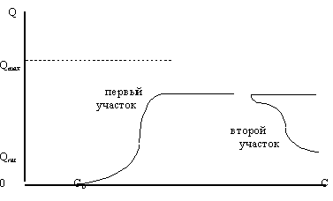 Полученный результат требует объяснений и обоснования. Следует найти ответ на вопрос: в каком случае может существовать первый участок кривой, а в каком будет существовать второй участок?