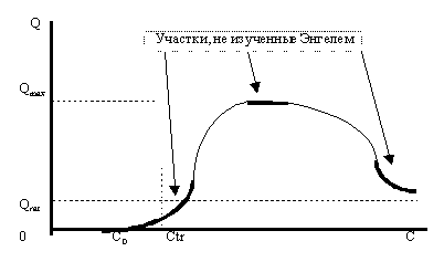 Как известно, Энгель изучал поведение отдельных групп потребителей, а не всего спектра потребителей данного товара. Это подтверждает полученный мною вывод о том, что изученные Энгелем зависимости и известные под его именем кривые - лишь часть всей возможной совокупности подобных кривых любого товара. Полный вид этой кривой, а точнее, семейства кривых, удалось получить в предыдущем параграфе.