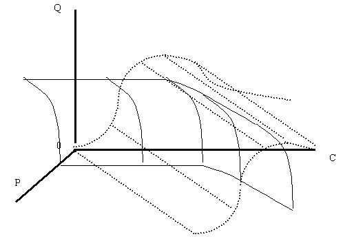 А если это так, то вряд ли предложение будет безучастно относиться к этому обстоятельству и лишь следить за нахождением участка равновесной кривой в той или иной ее фазе. Как только в выявленном сегменте намечается снижение интереса к данному товару, фирма должна сделать все возможное для того, чтобы удержать этот интерес на прежнем уровне. Как это можно сделать? Только за счет предоставления дополнительных услуг или повышения качества. Это означает, что себестоимость производства товара возрастает. В этом случае предложение будет зависеть от дохода потребителя и поверхность предложения уже не будет располагаться в рассматриваемом пространстве параллельно оси доходов.