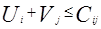 поставщиков и потребителей, их удобно интерпретировать как цены продукта в соответствующих пунктах поставщиков и потребителей.