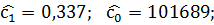 Подставим оценки коэффициентов парной регрессии в формулы: